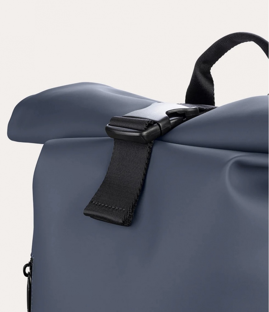 Mugursoma ar rullveida aizdari, kas paredzēta 15,6 collu klēpjdatoriem un 16 collu MacBook datoriem, izgatavota no pārstrādāta, ūdensizturīga auduma.
