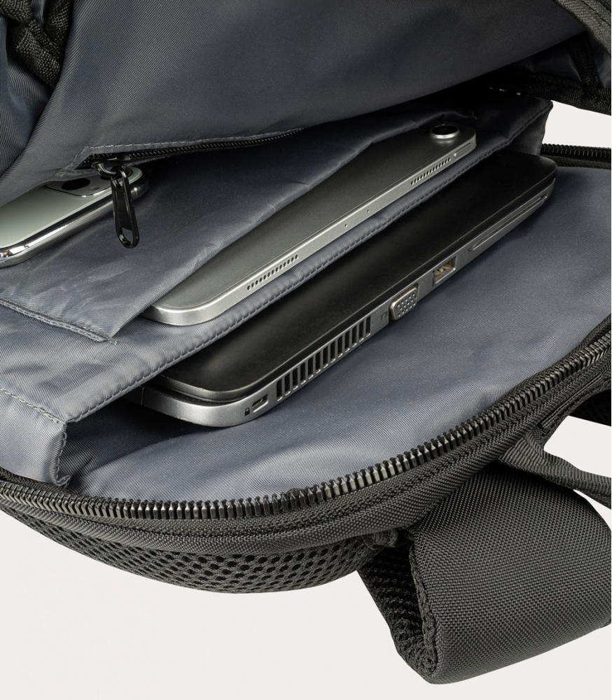 Terras mugursoma ir izgatavota no augstas blīvuma auduma, un tās kabatas ir ļoti labi organizētas: tajā ir divas iekšējās kabatas ar aizsargpolsterējumu planšetdatoriem un klēpjdatoriem, divas ietilpīgas priekšējās kabatas ar atšķirīgu augstumu, kā arī divas sānu kabatas lietussargam un ūdens pudelei.