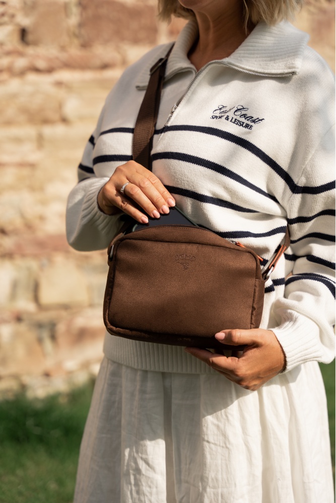 Materiāls: Samtains poliesters, īstas ādas apdare, poliestera un kokvilnas odere.